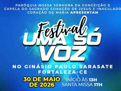 Ver OfertaFestival uma SÓ VOZ de Arte Cristã O Jeito Cristão de fazer Arte 30 de Maio de 2026 OBJETIVO GERAL: Construção da Capela Sagrado Coração de Jesus e Imaculado Coração de Maria. Apoio: Paróquia Nossa Senhora da Conceição. Direção: Pe. Severino Guedes. Venha se unir a nós nessa celebração de arte e fé! Compre seu ingresso agora e venha VIVER essa experiência única!. Participações: Pe. Christian Shankar, Comunidade Colo de DEUS; Banda Vida Reluz Pe. Severino Guedes Comunidade Paraclito. Atração Principal: Imagem Peregrina de Nossa Senhora de Fátima de Portugal. Sejam BEM VINDOS!!