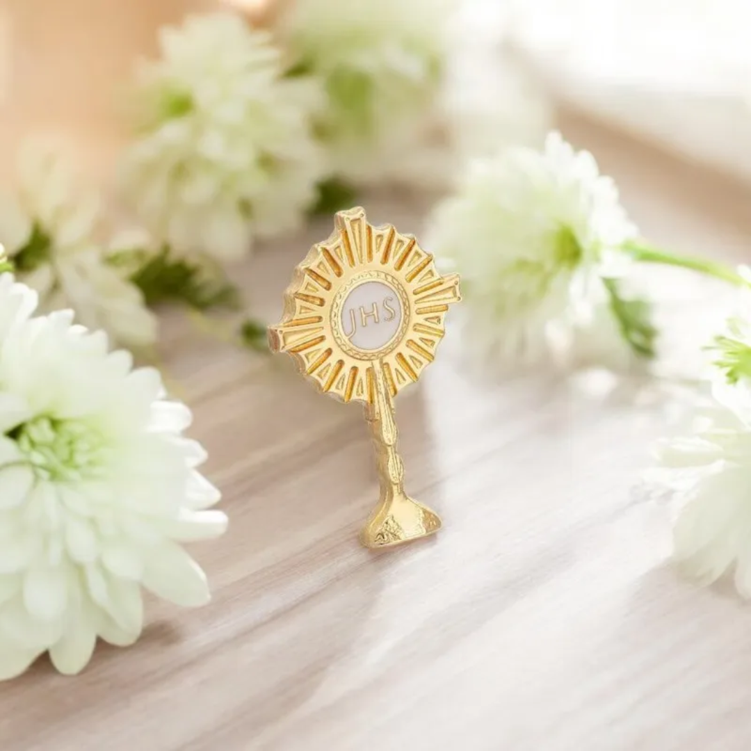 O Boton Ostensório Dourado é um acessório delicado e cheio de significado, perfeito para expressar sua fé no dia a dia. Com acabamento dourado e design que remete ao Santíssimo Sacramento, ele pode ser usado em roupas, bolsas, mochilas, acessórios litúrgicos ou até mesmo como lembrancinha religiosa.