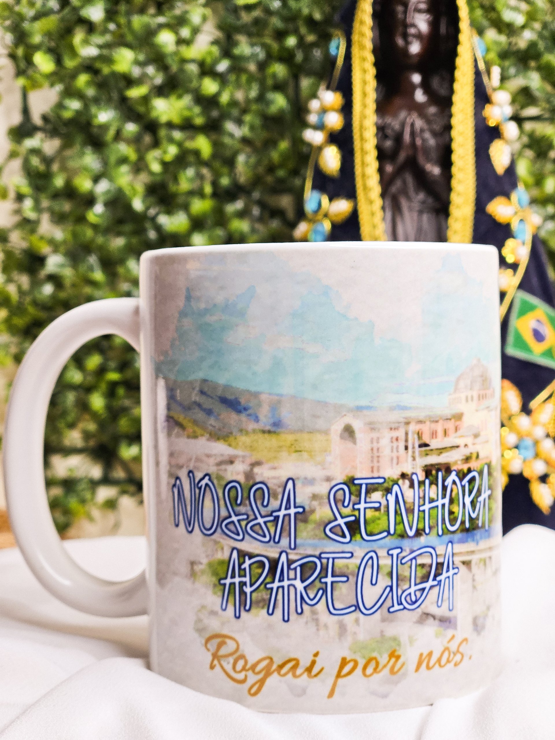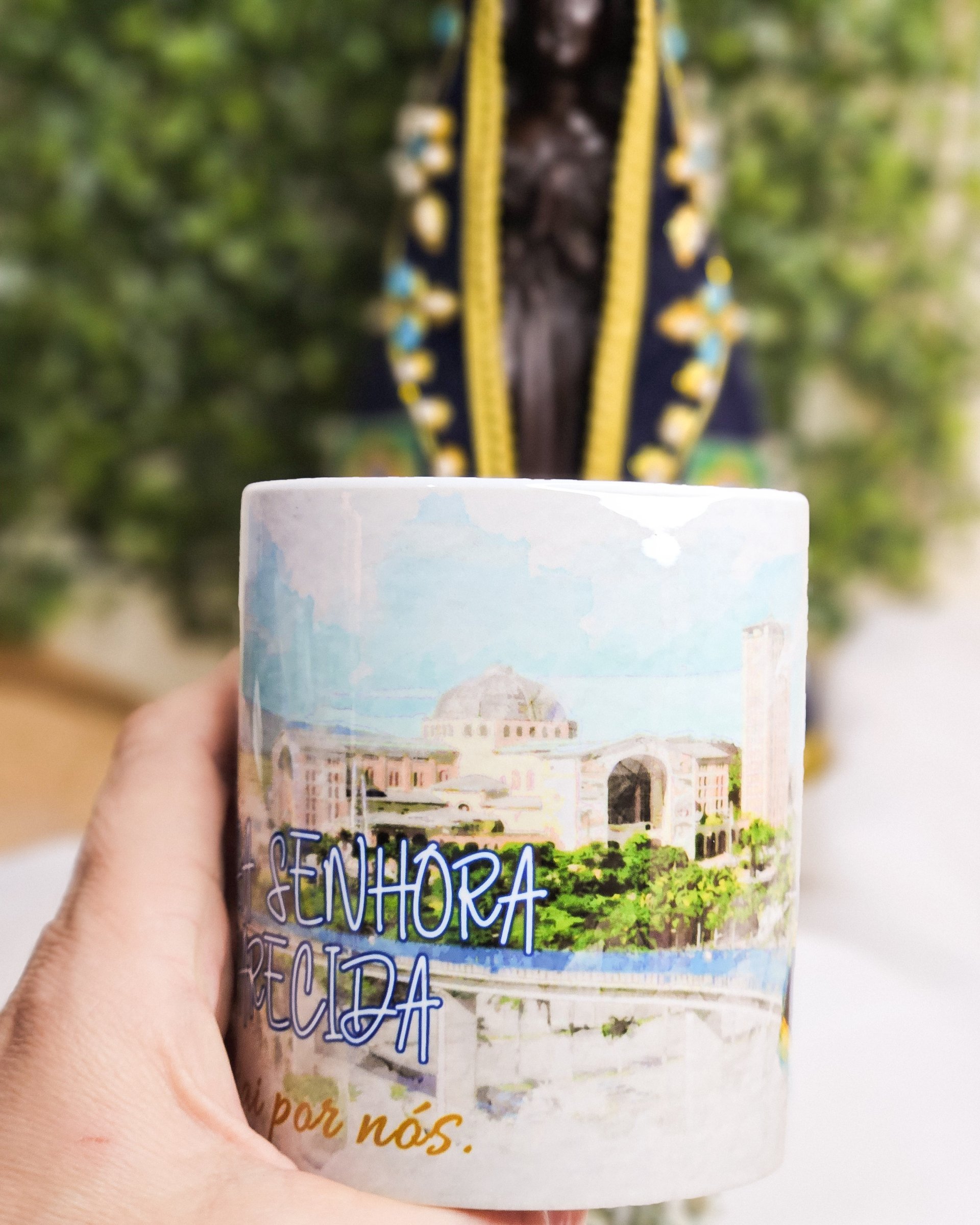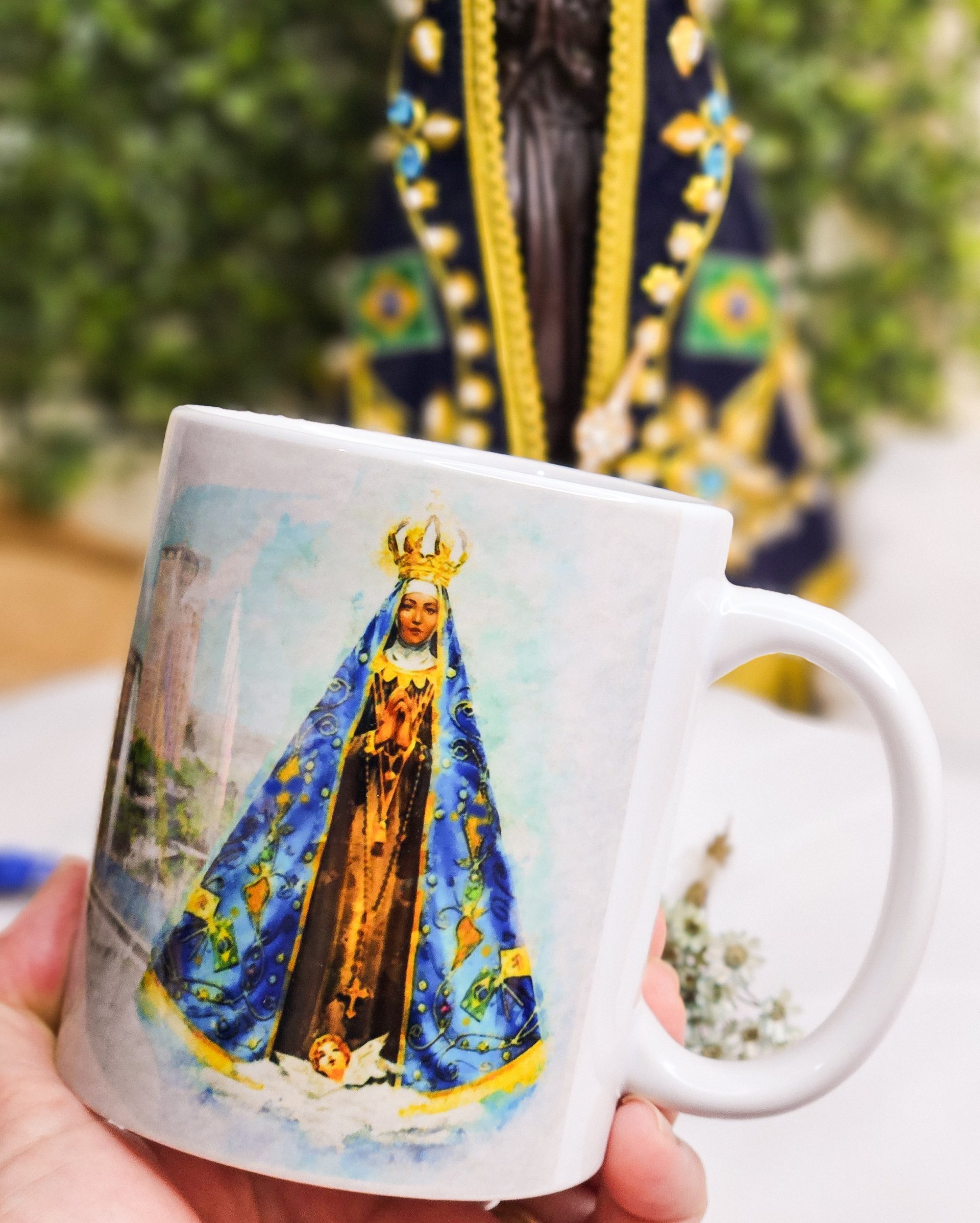 A Caneca Nossa Senhora Aparecida é uma homenagem à Padroeira do Brasil, símbolo de fé, amor e esperança para milhões de devotos. Com uma arte delicada que une a imagem de Nossa Senhora Aparecida e o Santuário Nacional, esta caneca é um convite à oração e à confiança em Maria Santíssima.