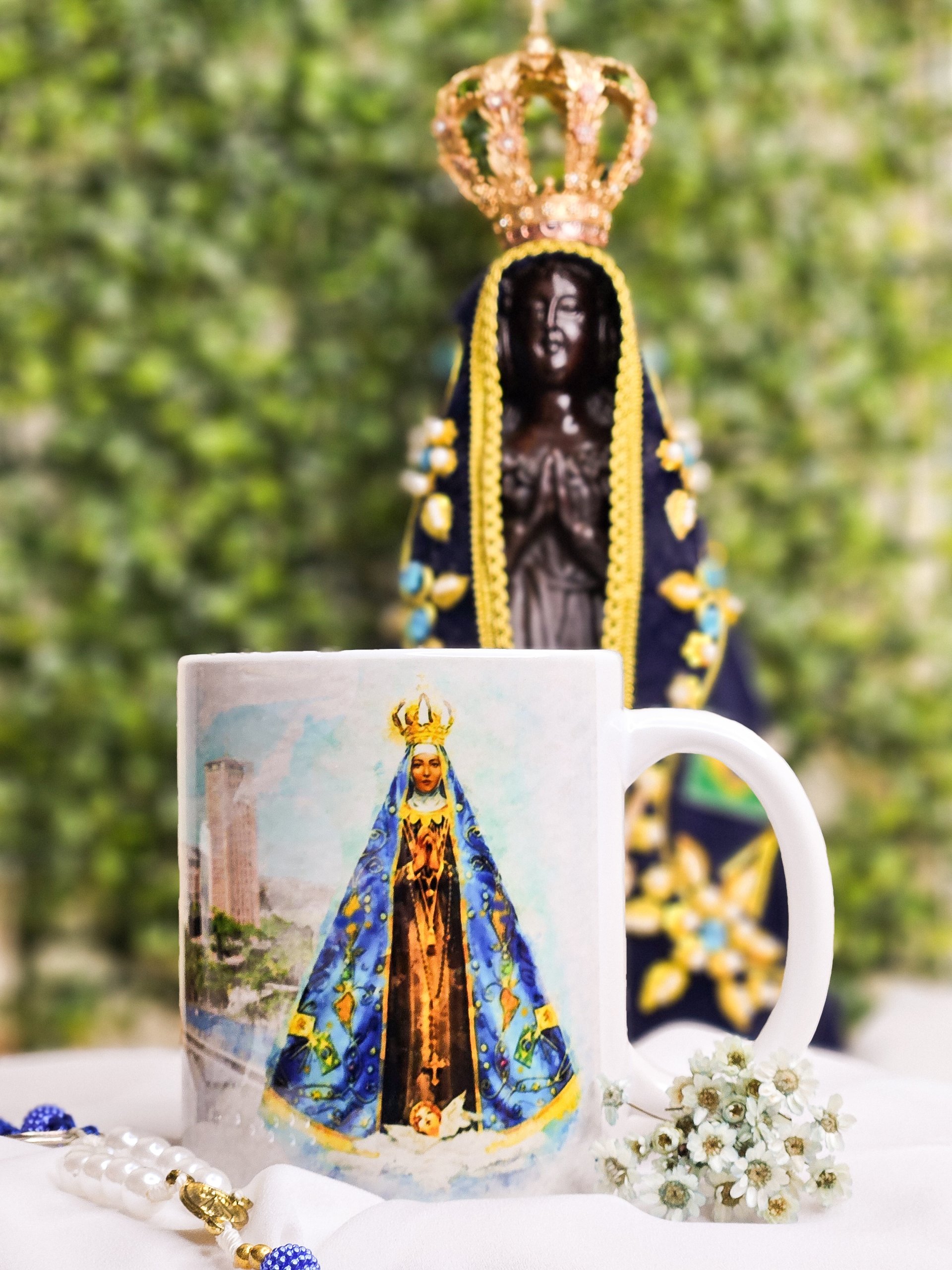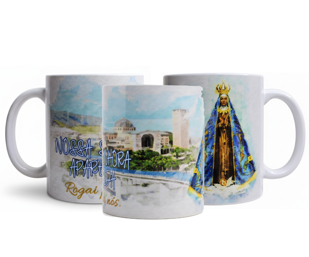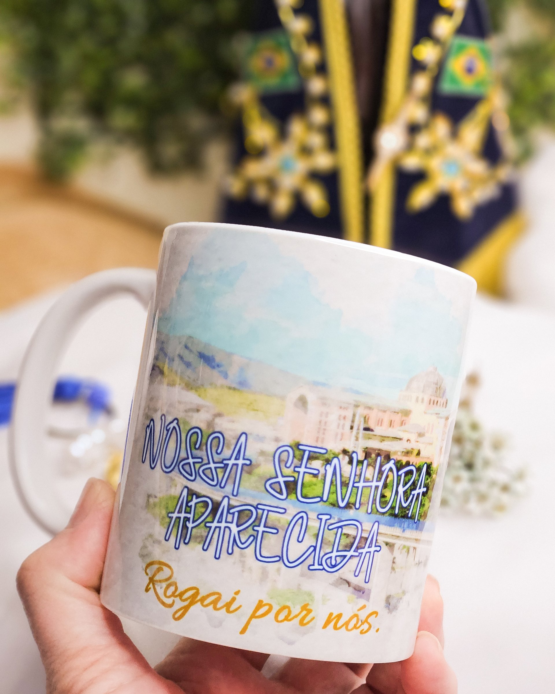 A Caneca Nossa Senhora Aparecida é uma homenagem à Padroeira do Brasil, símbolo de fé, amor e esperança para milhões de devotos. Com uma arte delicada que une a imagem de Nossa Senhora Aparecida e o Santuário Nacional, esta caneca é um convite à oração e à confiança em Maria Santíssima.