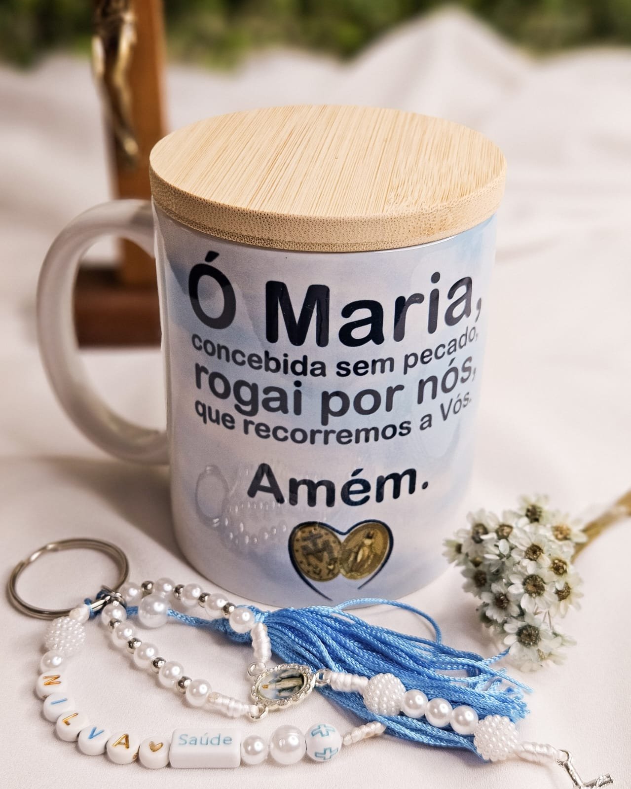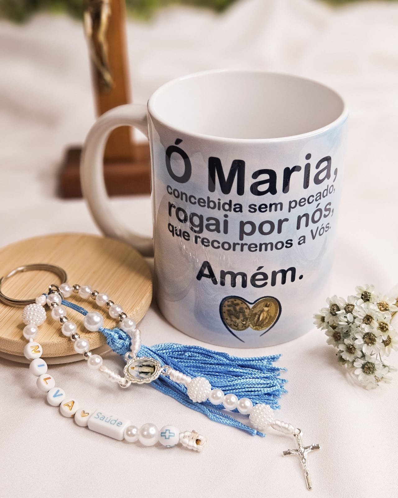 Use sua caneca durante o café da manhã, orações ou momentos de reflexão. Pode ser usada também como recipiente decorativo para velas, flores secas ou porta-terço — lembrando sempre da presença de Maria em sua vida.