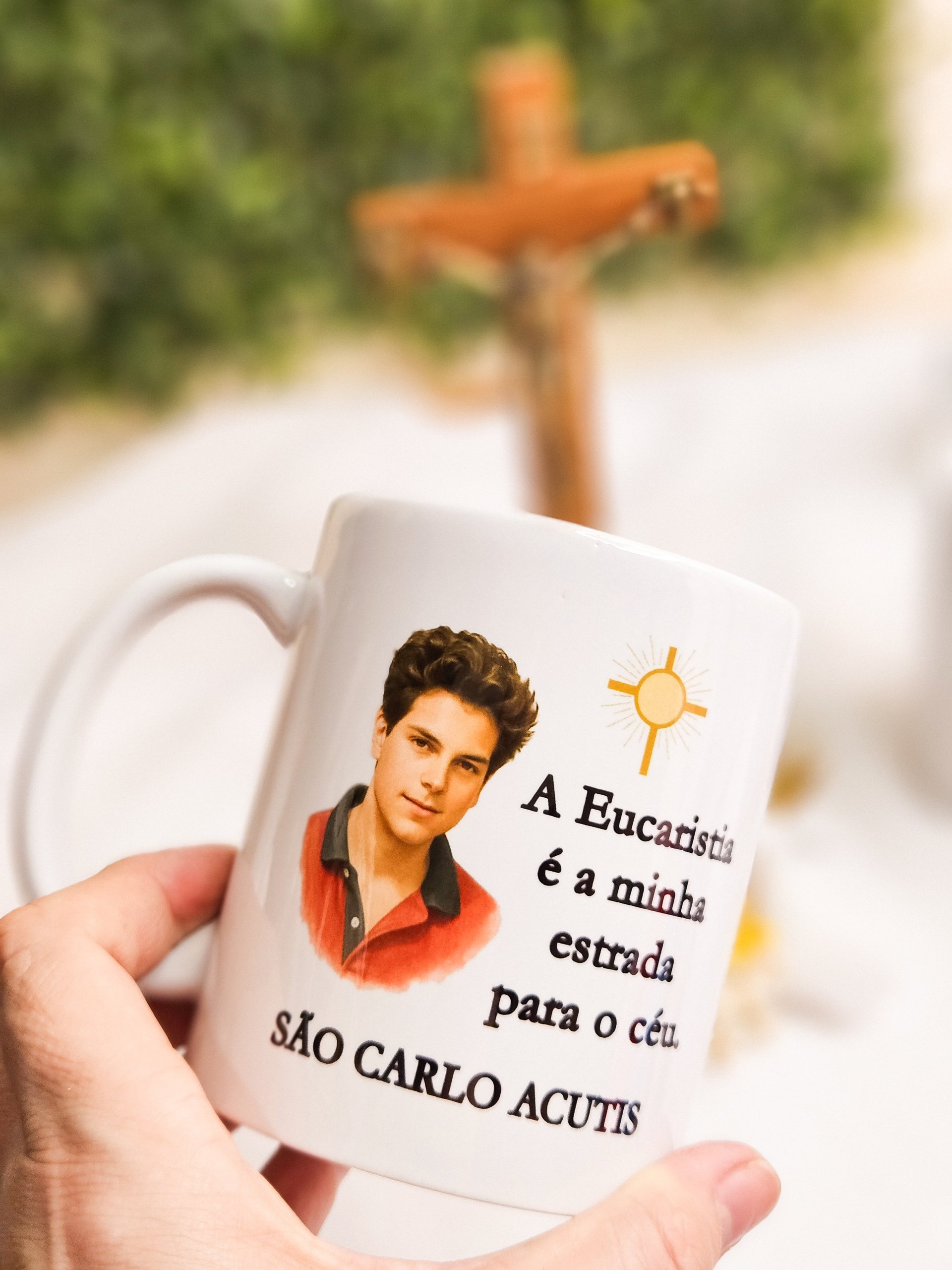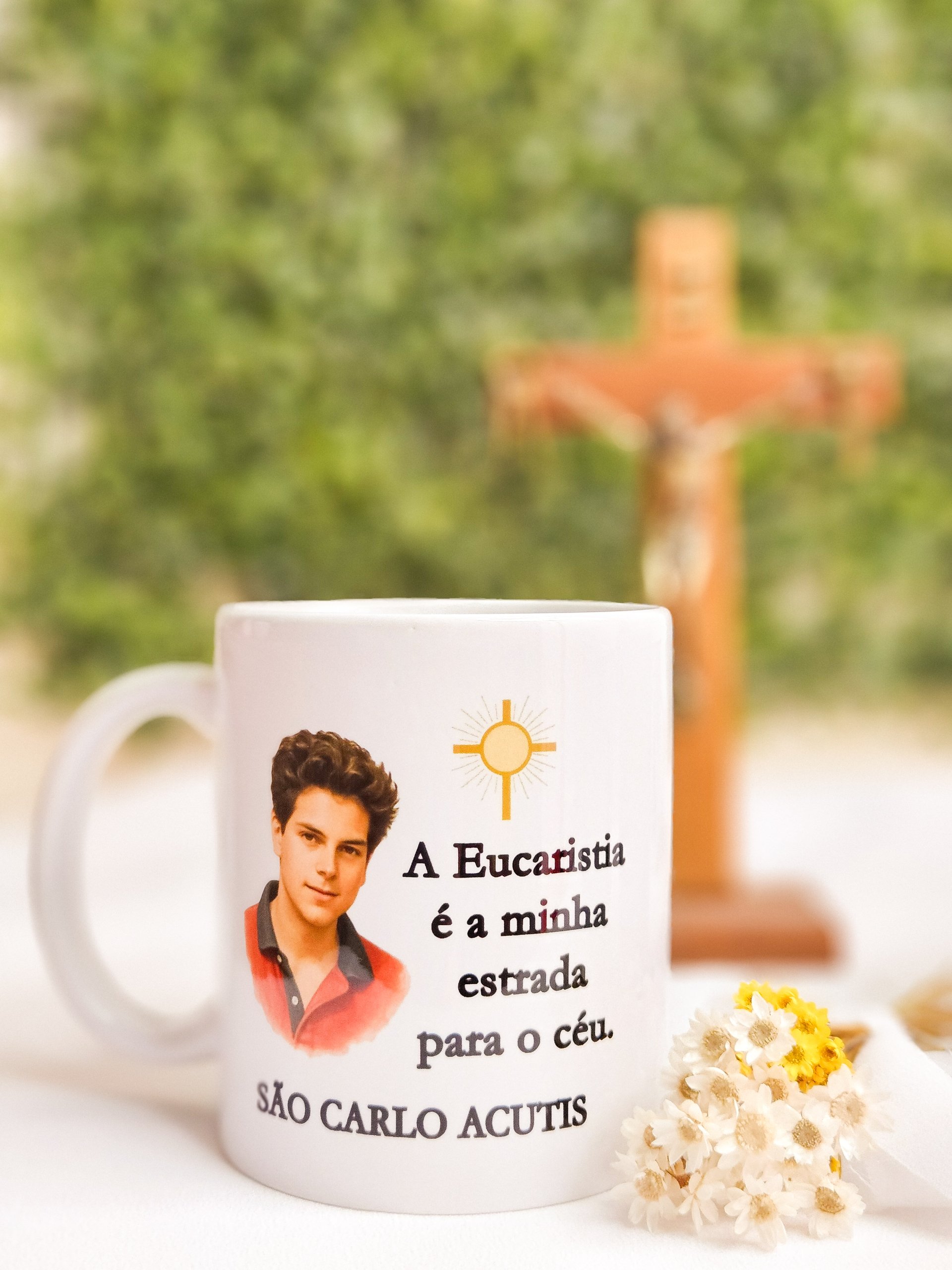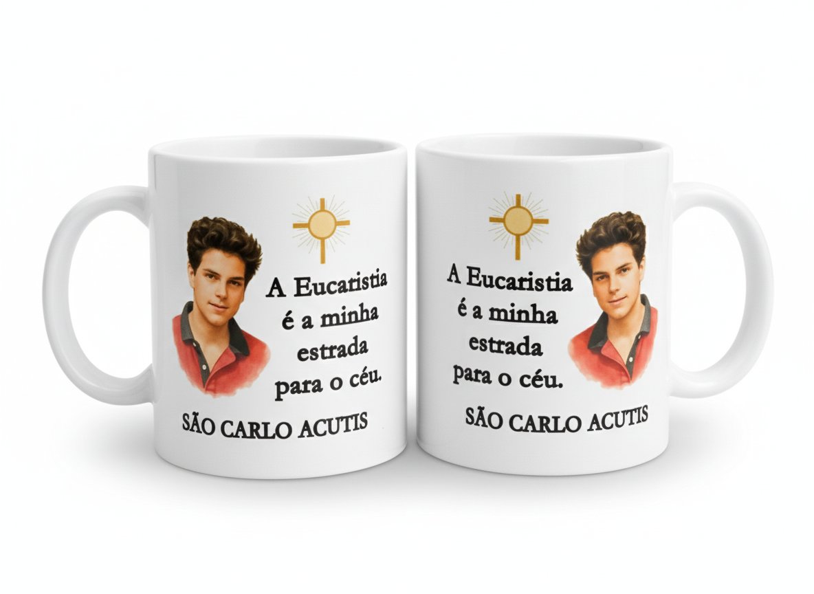 A Caneca de São Carlo Acutis é uma linda homenagem ao jovem santo conhecido como o “influencer de Deus”. Com design delicado e a frase inspiradora “A Eucaristia é minha estrada para o Céu”, ela é um lembrete diário da presença de Jesus na Eucaristia e do chamado à santidade no cotidiano.
