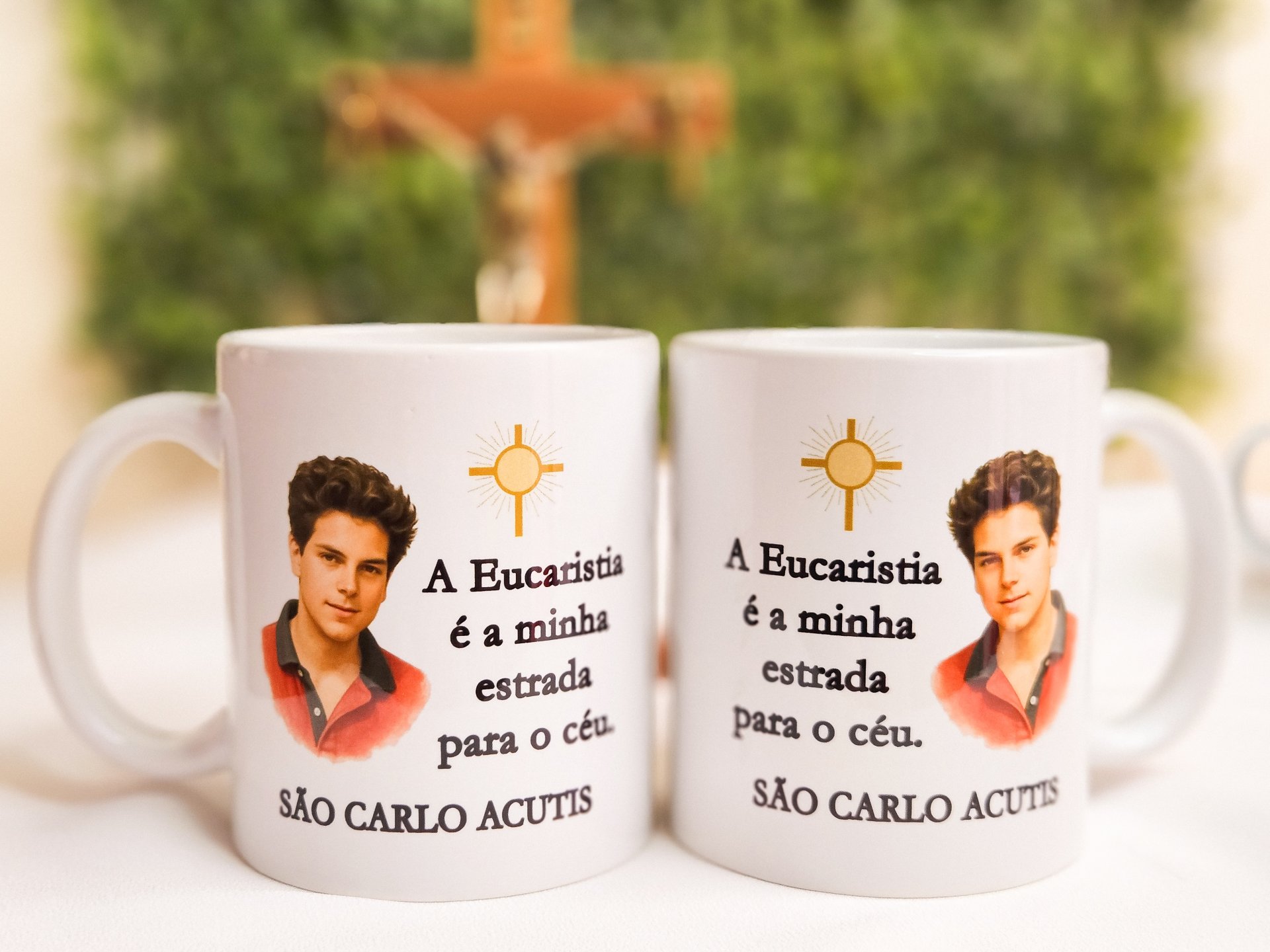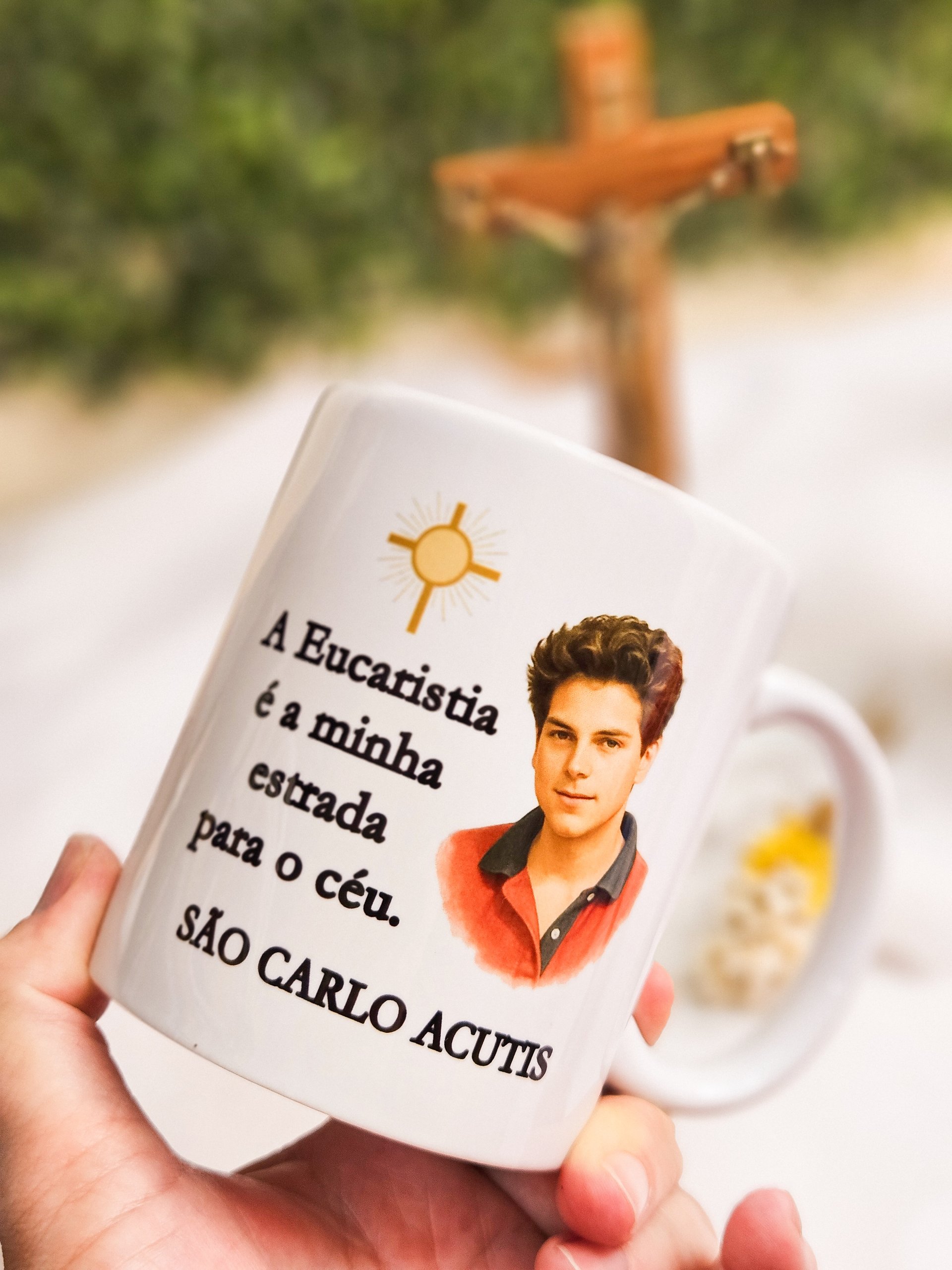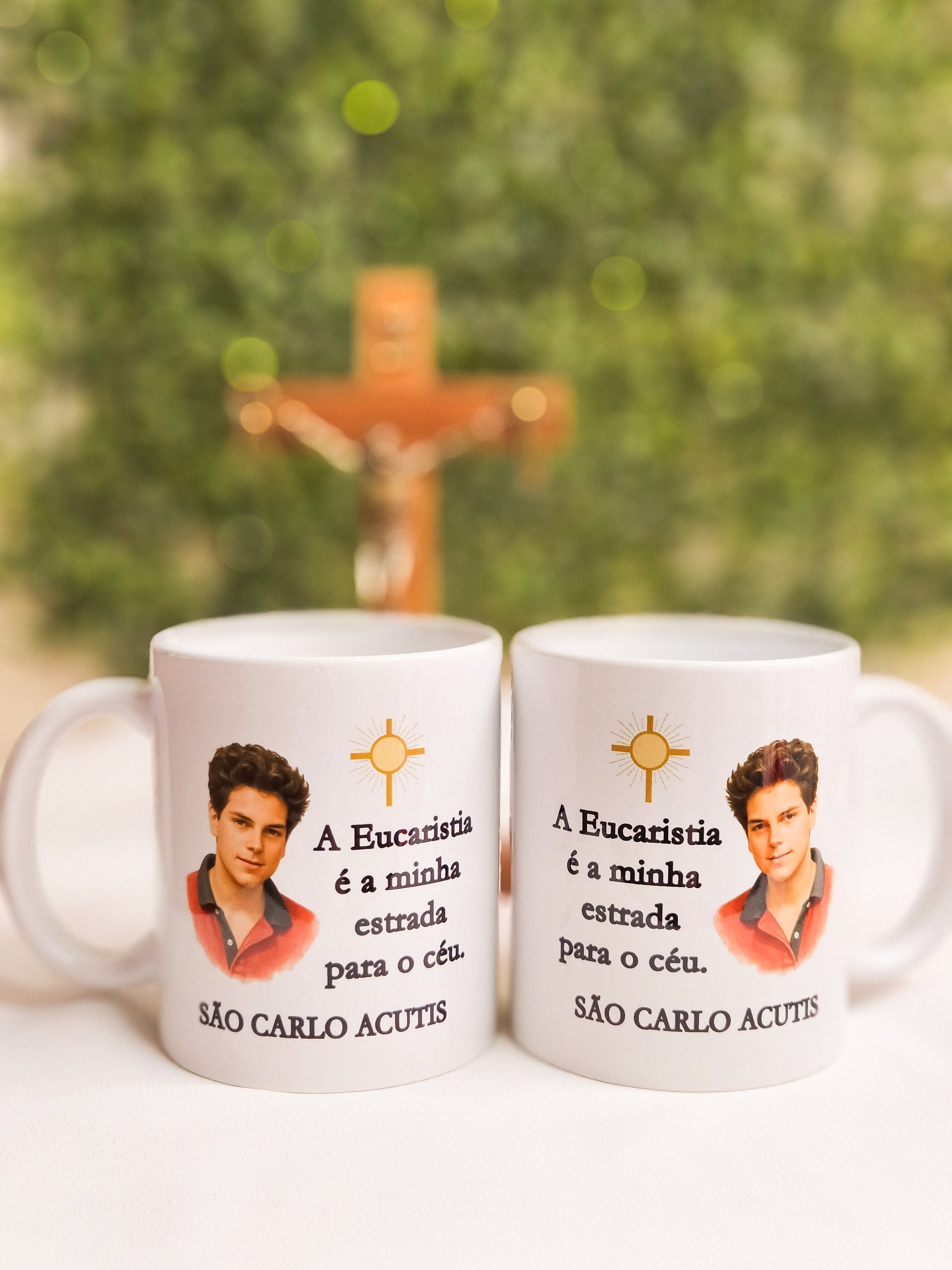 A Caneca de São Carlo Acutis é uma linda homenagem ao jovem santo conhecido como o “influencer de Deus”. Com design delicado e a frase inspiradora “A Eucaristia é minha estrada para o Céu”, ela é um lembrete diário da presença de Jesus na Eucaristia e do chamado à santidade no cotidiano.