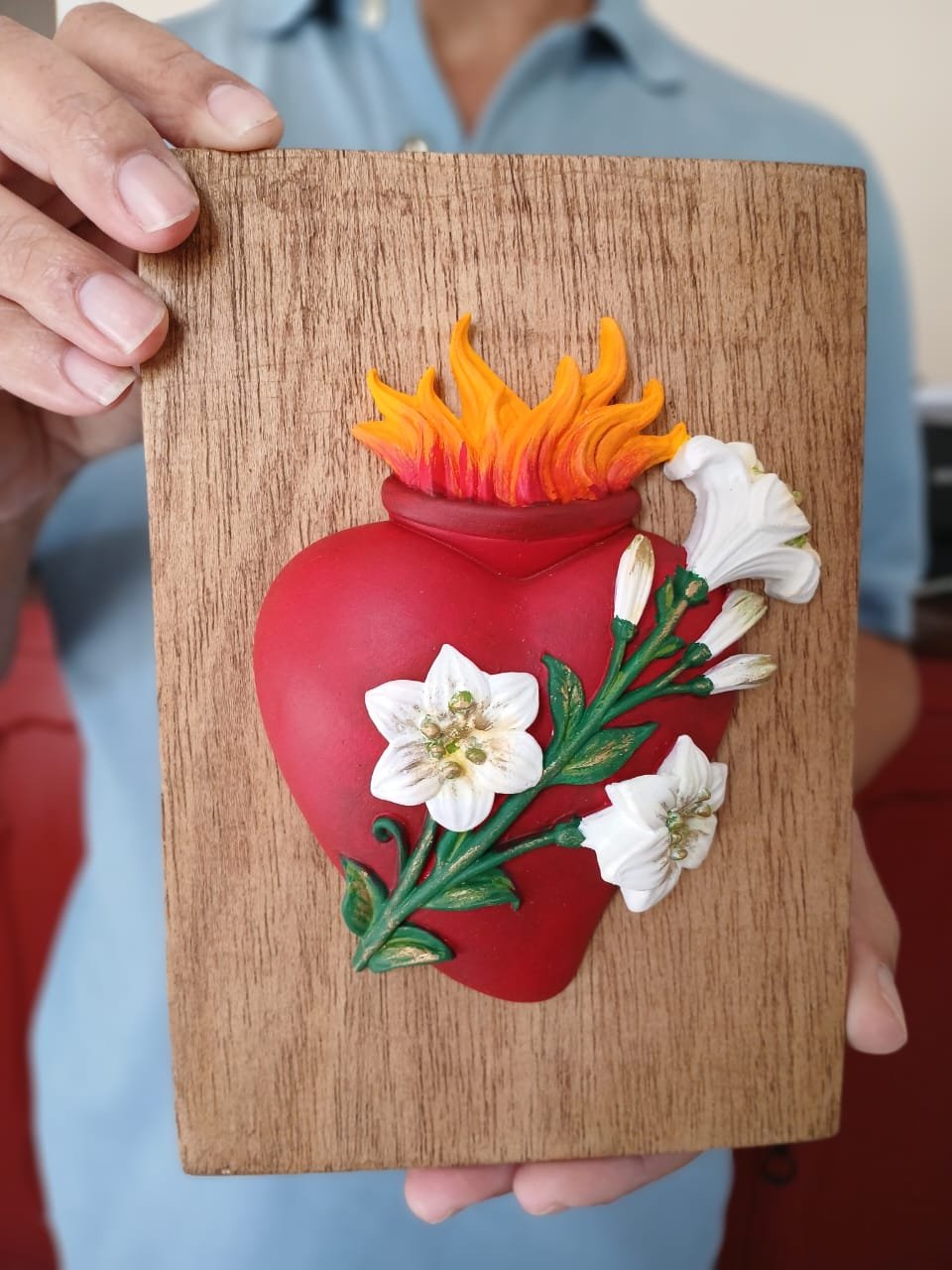 - Peças únicas, feitas manualmente, que unem fé e arte.