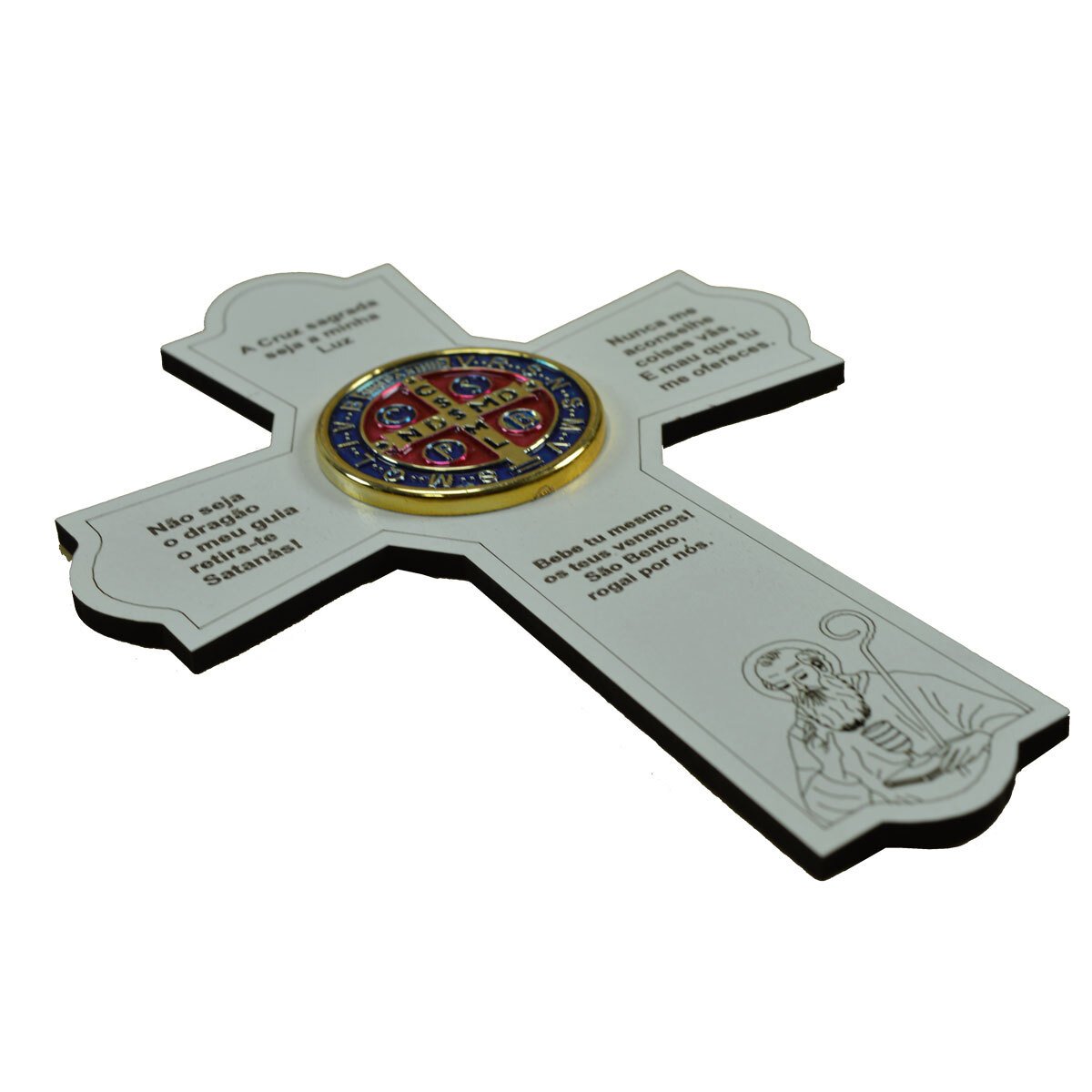 Acompanha imagem de São Bento na base da cruz