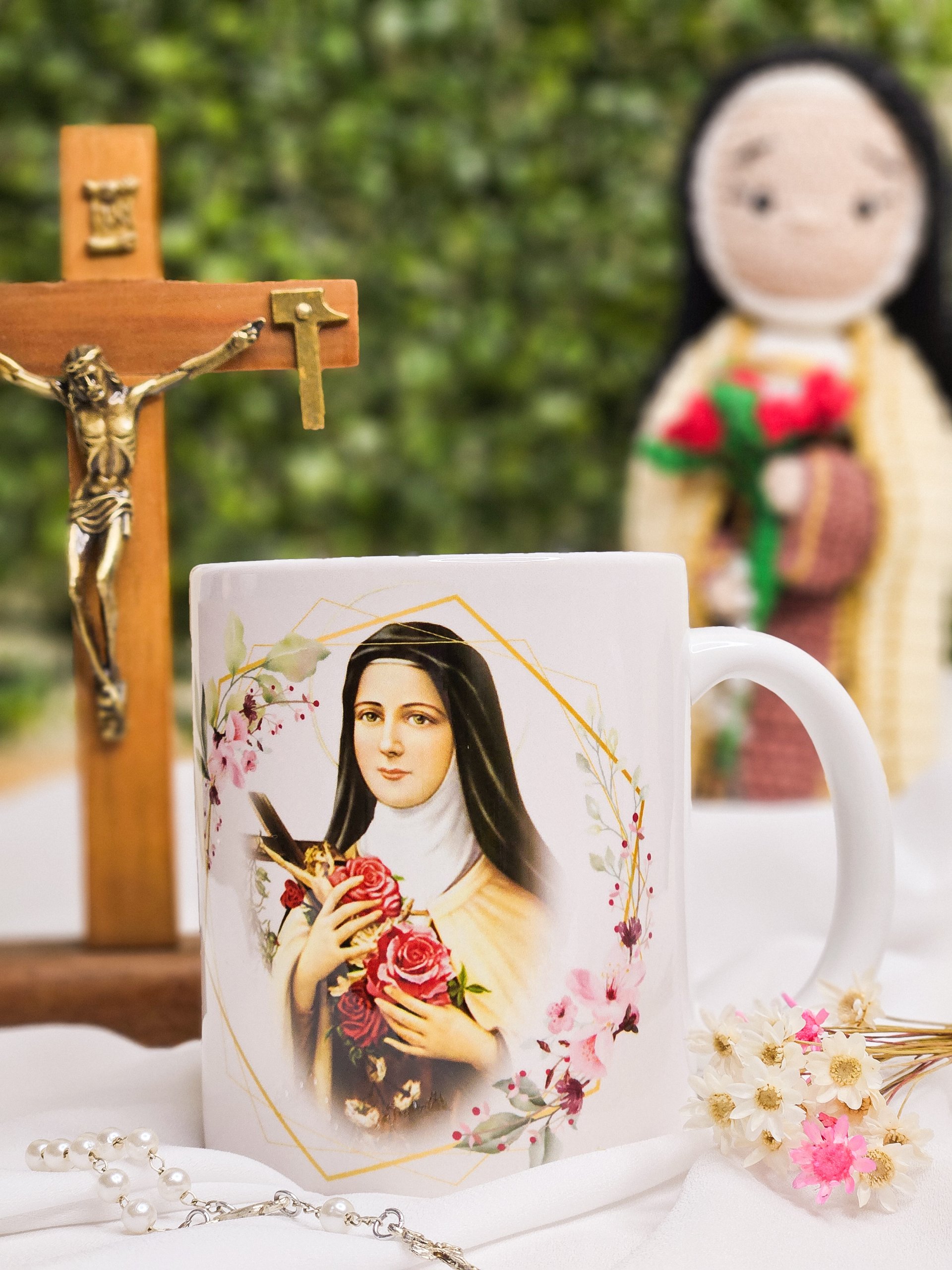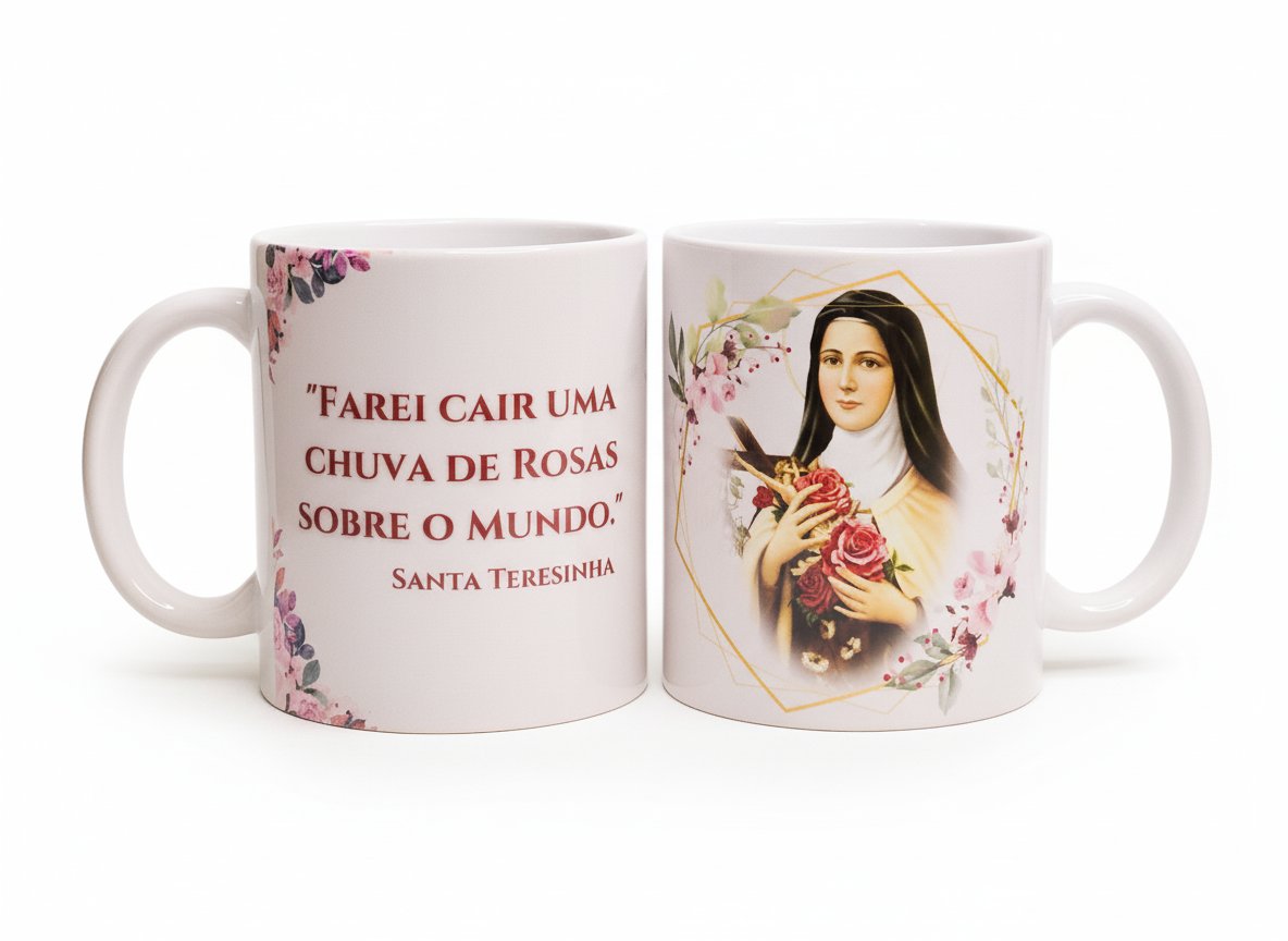 Caneca Santa Teresinha do Menino Jesus – Chuva de Rosas | Presente Religioso Católico