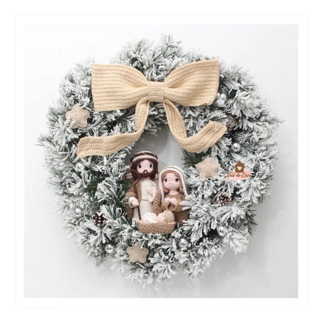 Celebre o verdadeiro espírito do Natal com nossa Guirlanda Sagrada Família em crochê. Esta peça exclusiva, feita à mão com amor e devoção, é mais que uma decoração; é um convite à fé e à contemplação da natividade de Jesus em seu lar.