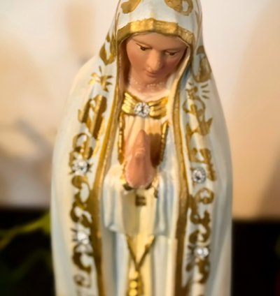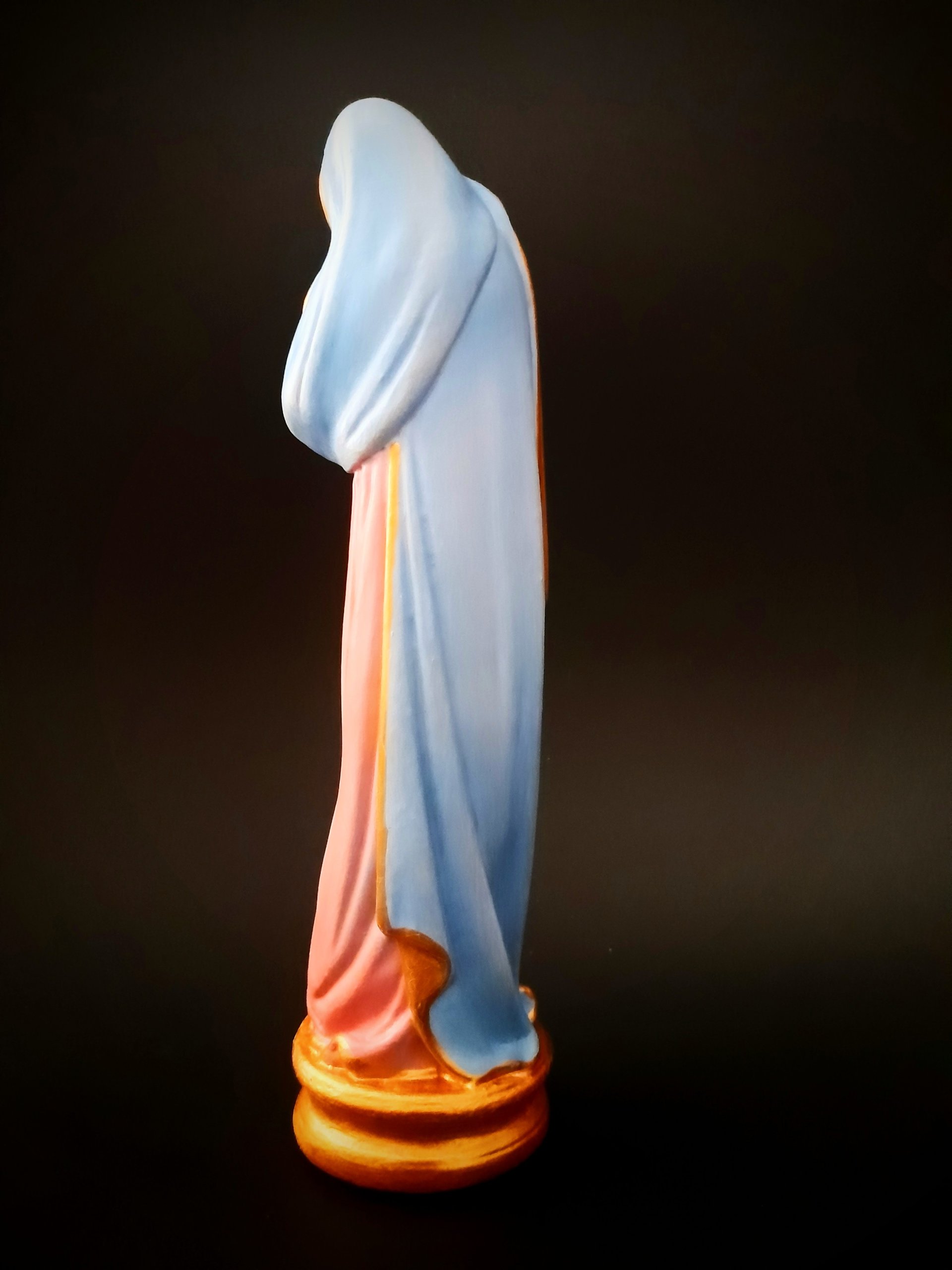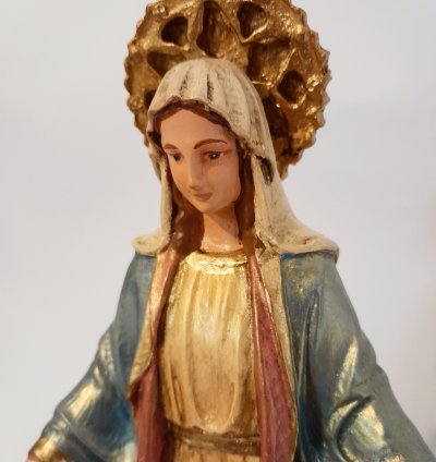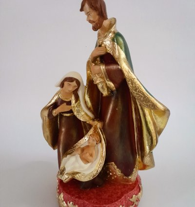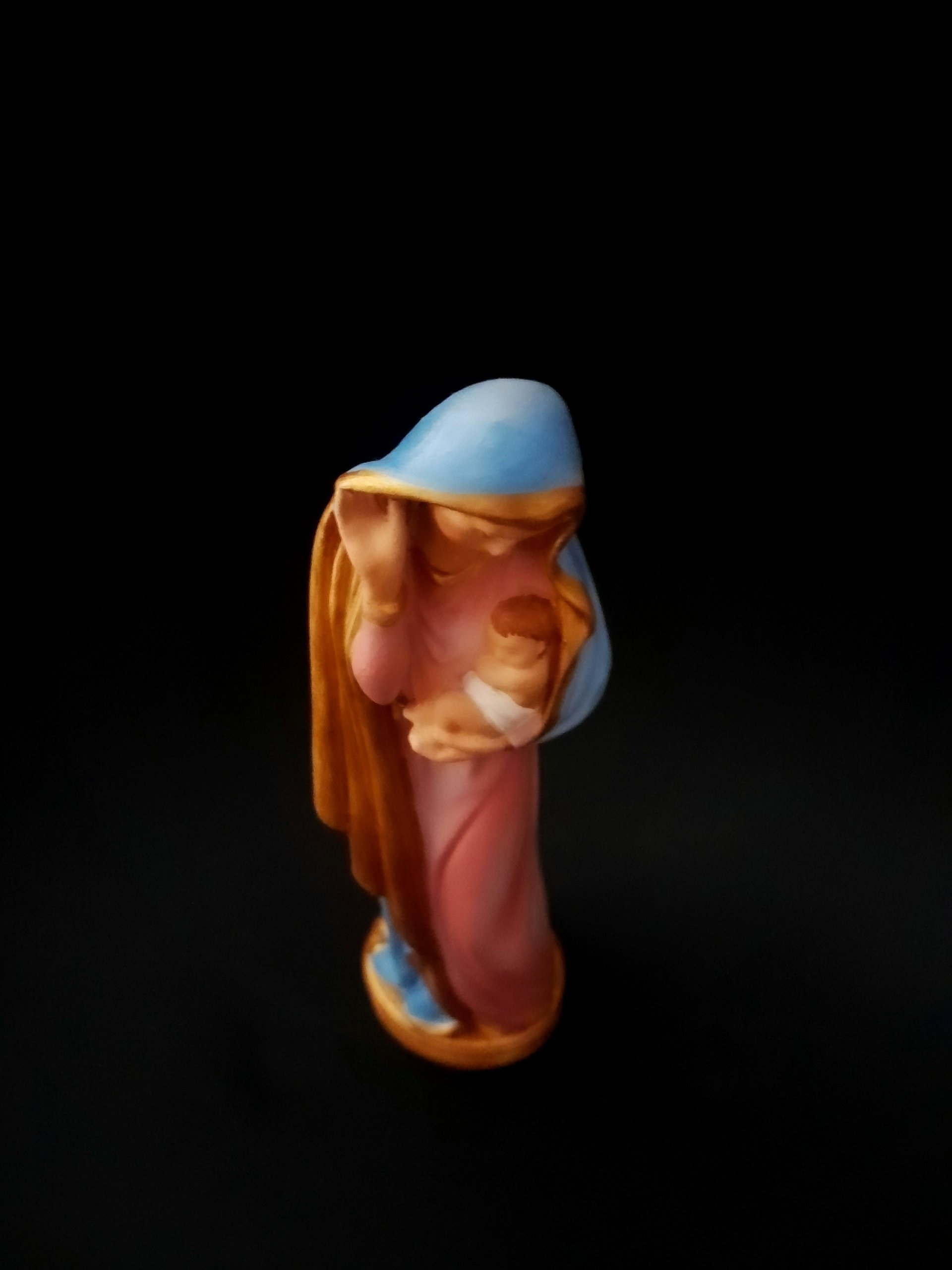 Representada com ternura, esta imagem retrata Nossa Senhora acolhendo com amor o Filho em seus braços. Mais do que uma escultura, transmite o simbolismo do aconchego materno, da proteção e confiança que encontramos no colo Maria. É um convite à oração, à entrega, lembrando que o cuidado da Mãe de Deus se estende a todos os seus filhos. Oferecendo paz, entrega e esperança.