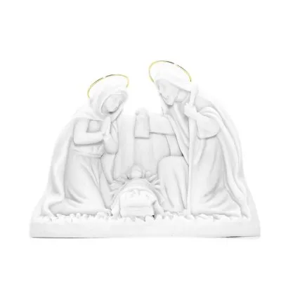 Feito em pó de mármore e acabamento a mão hiper realista. Acompanha auréola banhada a ouro.