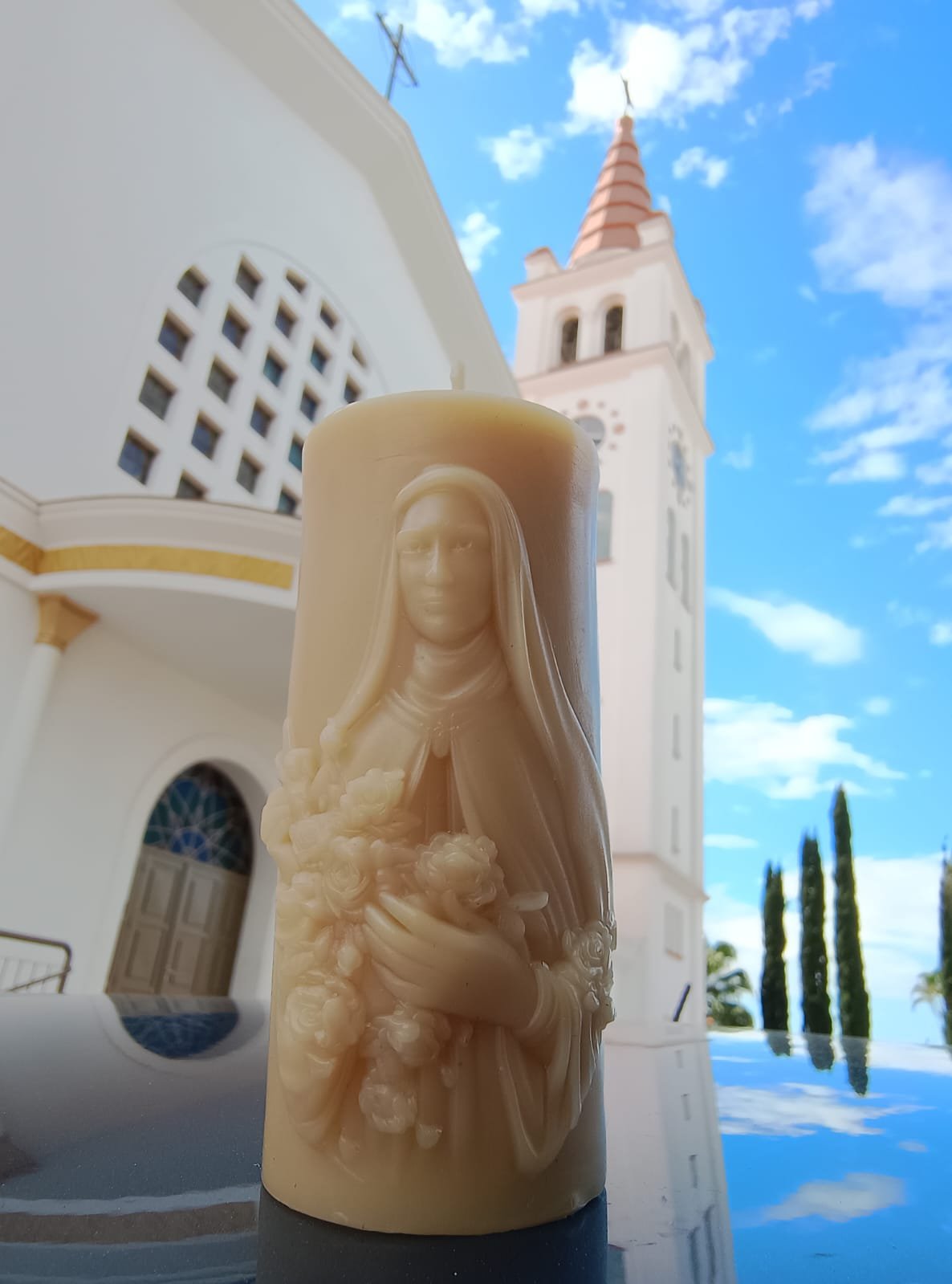 - Produto 100% Cera de Abelha e exalam um suave aroma de mel, nos recordando a delicadeza da criação de Deus. Uma peça belíssima, nos tráz a imagem de Santa Teresinha, com riqueza de detalhes, nos ajudando a mergulhar na intimidade com Deus, por intercessão de Santa Teresinha.