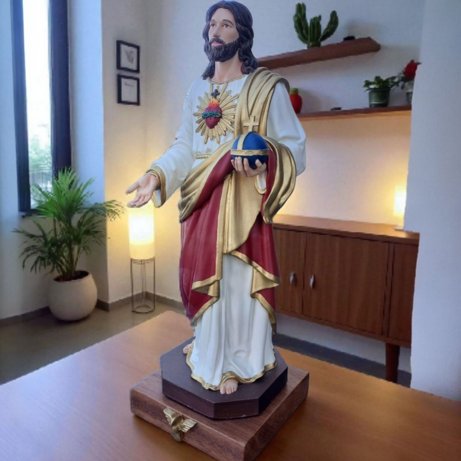 Ter Jesus no ambiente do lar é ter paz, proteção e harmonia todos os dias. Ele é luz, acolhimento e refúgio. Esta bela imagem do Sagrado Coração de Jesus é mais do que uma peça decorativa; é um símbolo vivo da sua fé e um lembrete constante do amor divino que abençoa sua família. Com o Coração de Jesus presente, seu lar se torna um verdadeiro santuário de espiritualidade. Cada detalhe da fé católica é valorizado em nossos produtos.