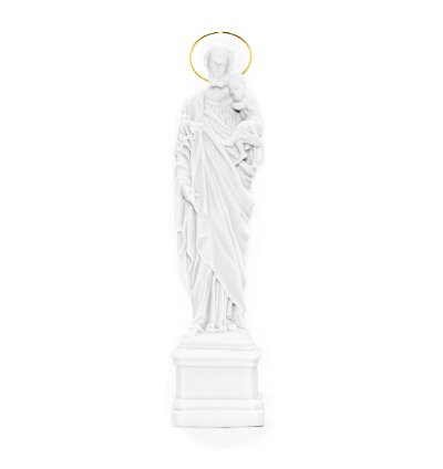 Feito em pó de mármore e acabamento a mão hiper realista. Acompanha auréola banhada a ouro.