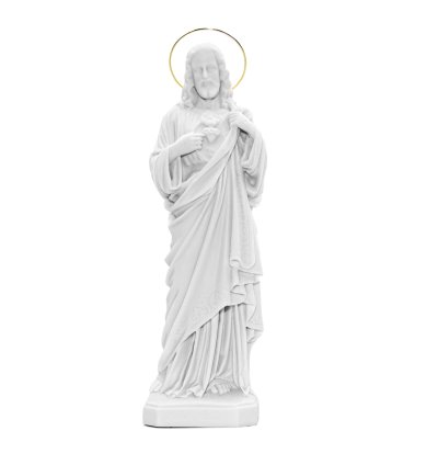 Feito em pó de mármore e acabamento a mão hiper realista. Acompanha auréola banhada a ouro.